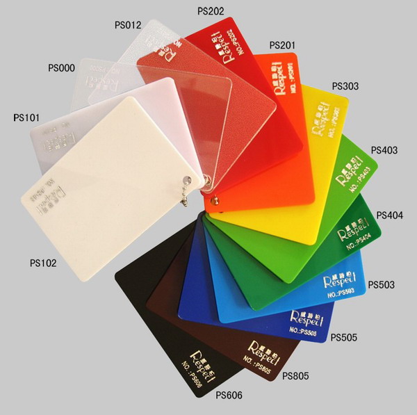 產品顏色:透明PS000、乳白PS101、瓷白PS102、橙色PS201、大紅PS202、黃色PS303、果綠PS403、綠色PS404、淺藍PS503、藍色PS505、黑色PS606、棕色PS805、磨砂板PS012